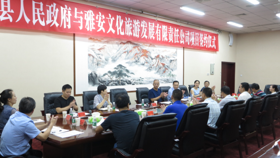 簽約儀式由漢源縣政府副縣長林卓主持。市人大常委會副主任、漢源縣委書記楊興品,漢源縣委副書記、縣長鄭朝彬,市旅發(fā)委副主任孟水明,雅安文旅公司董事長張雅斌分別致辭。漢源縣招商局、旅游局、住建局、國土局等部門負責(zé)人,雅安文旅公司總經(jīng)理唐亮、黨支部書記、副董事長殷麗華及全體班子成員參加簽約儀式。