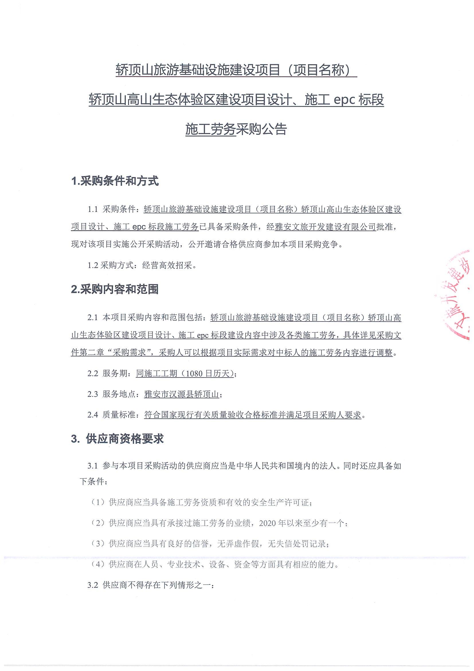 轎頂山高山生態(tài)體驗(yàn)區(qū)建設(shè)項(xiàng)目設(shè)計(jì)、施工epc標(biāo)段施工勞務(wù)采購(gòu)公告