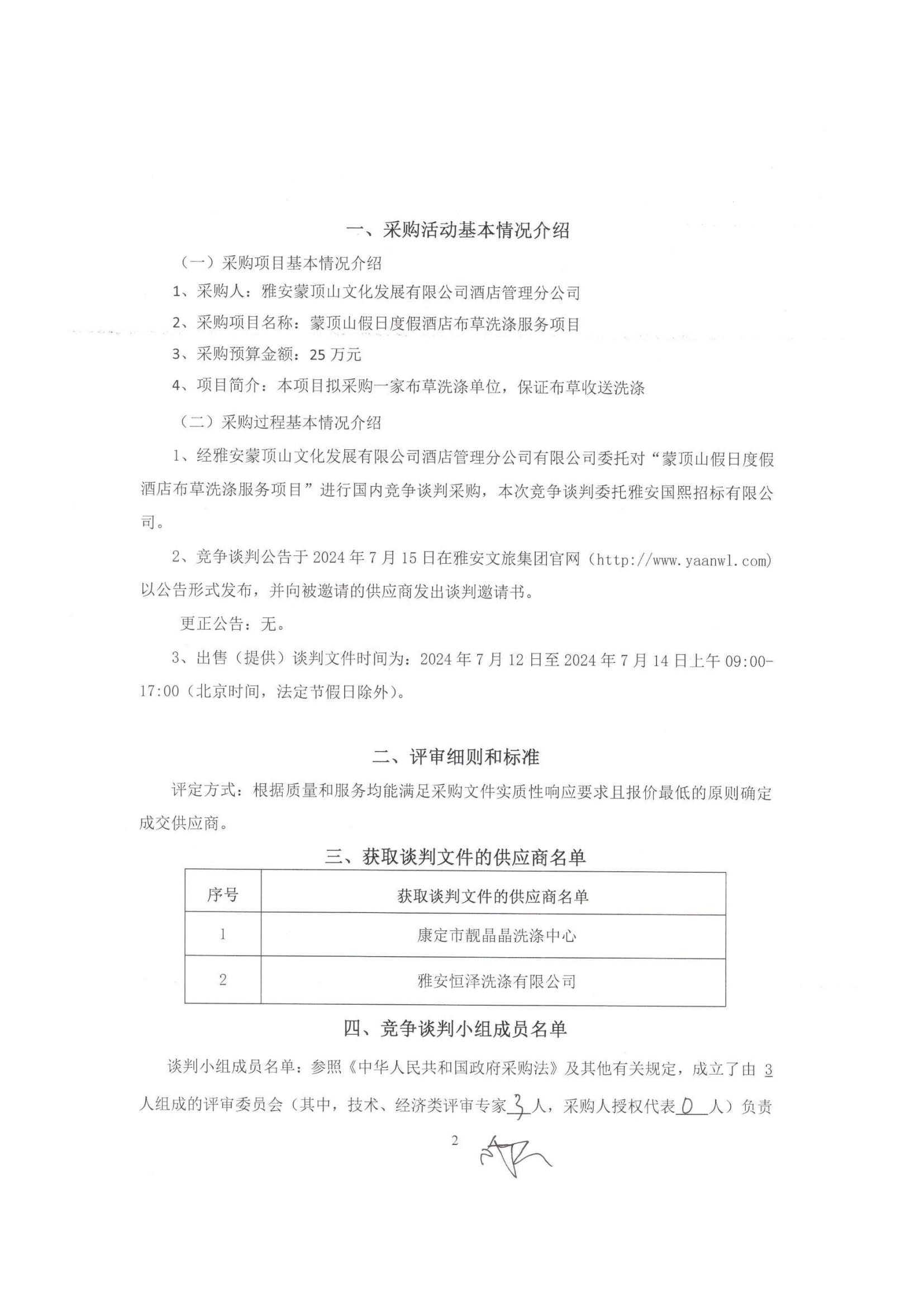 蒙頂山假日度假酒店布草洗滌服務(wù)項(xiàng)目評(píng)審報(bào)告