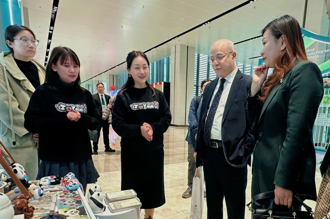 走進(jìn)大會展示區(qū),“雅安有禮”的展位前人來人往,熱鬧非凡。其中,熊貓主題系列文創(chuàng)產(chǎn)品格外引人注目。憨態(tài)可掬的熊貓?zhí)淄?,將大熊貓的萌態(tài)進(jìn)行了立體式的解構(gòu),讓人愛不釋手;而別具創(chuàng)意的涂鴉蓋碗,傳統(tǒng)的蓋碗與時尚的涂鴉相結(jié)合,在保留雅安茶文化韻味的同時,又注入了現(xiàn)代的藝術(shù)氣息,令國外嘉賓紛紛駐足欣賞、詢問購買?,F(xiàn)場講解的工作人員忙得不亦樂乎,耐心地為每一位咨詢的嘉賓介紹產(chǎn)品的特色與背后的文化內(nèi)涵。