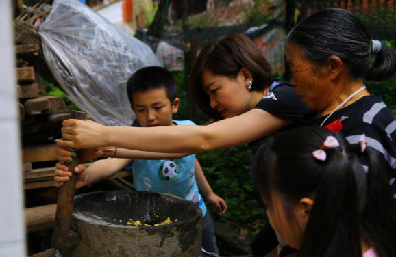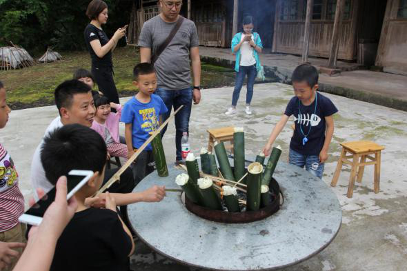 “碧螺谷親子自然體驗營”是一堂生動的自然研學(xué)課堂,父母帶著孩子住農(nóng)家院、吃農(nóng)家飯、干農(nóng)家活,走進(jìn)山村、了解自然。一起調(diào)制雄黃酒,抹額黃、系五彩絲線、制香包祛毒驅(qū)毒,徒步螺山采草藥、斗百草,感受端午節(jié)民間風(fēng)俗。游客們還積極響應(yīng)“愛心后備箱”工程,根據(jù)所需,買走貧困戶家中的土雞、土鴨、蜂蜜、雅魚等農(nóng)特產(chǎn)品,村民就地取材自制的竹筒花器、原木畫片也成為“搶手貨”。